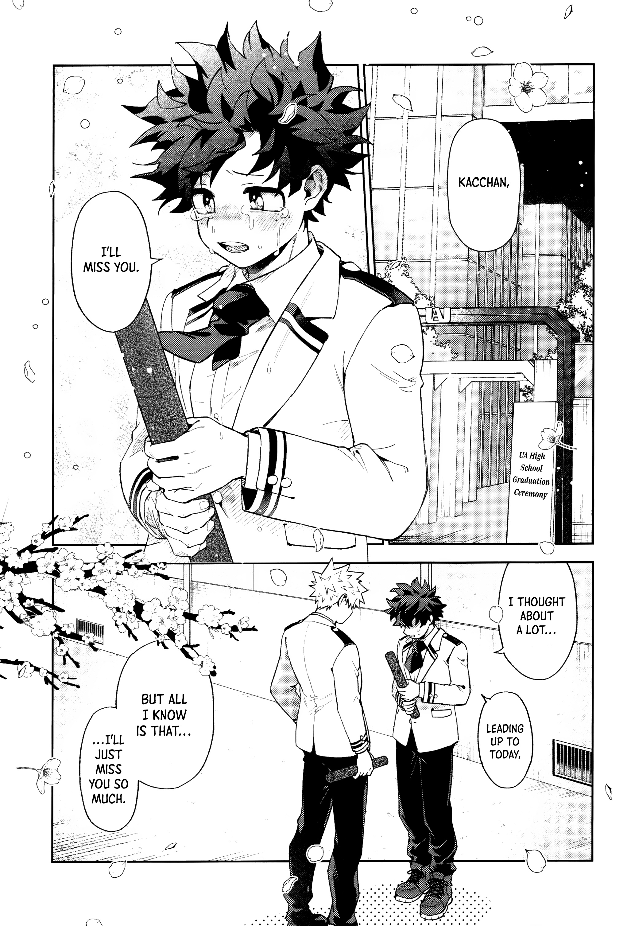 Summary: It's graduation day! Izuku calls Kacchan aside to finally confess his feelings, but Kacchan admits he's known for a long time. After everything they've been through, he explains it had to be Izuku who figured his own feelings out... But how will things go when they actually start dating for real?